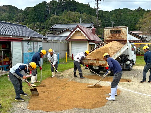 子どもたちが、安心して楽しく、遊んだり運動できるように、令和7年度国道56号下呉地歩道工事の担当職員たちががんばってくれました。